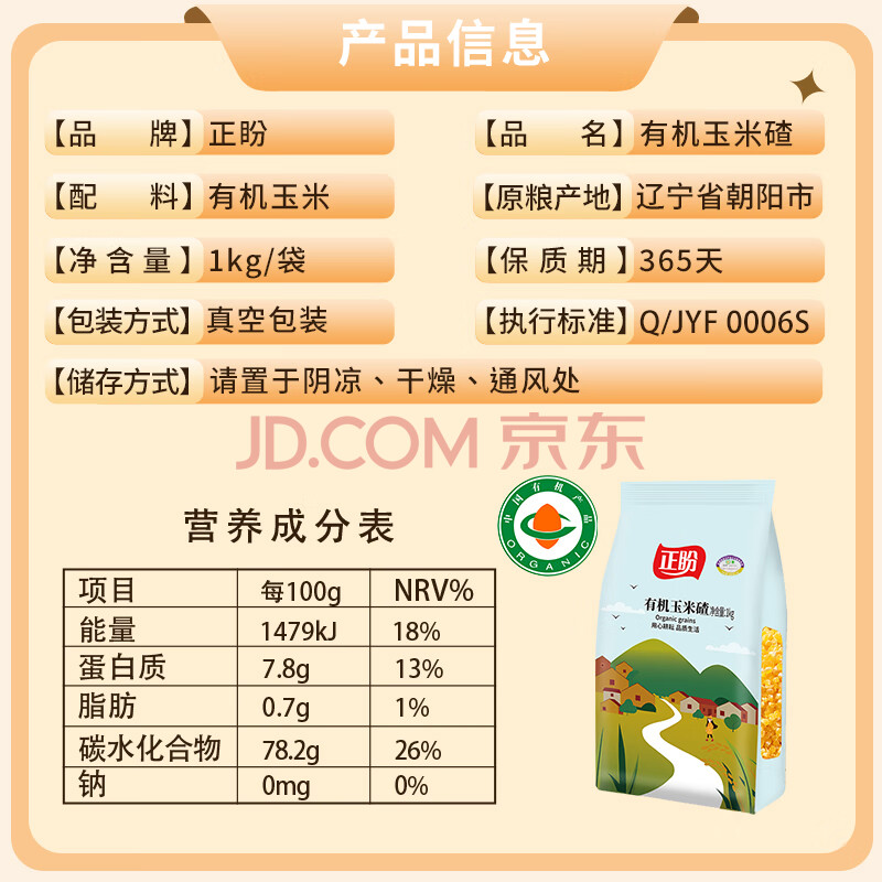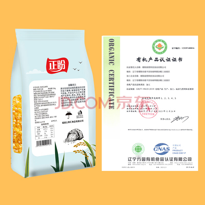 商品相册:正盼 有机玉米碴2斤/袋 玉米糁 玉米渣 苞米茬 苞米碴 玉米粒 真空第