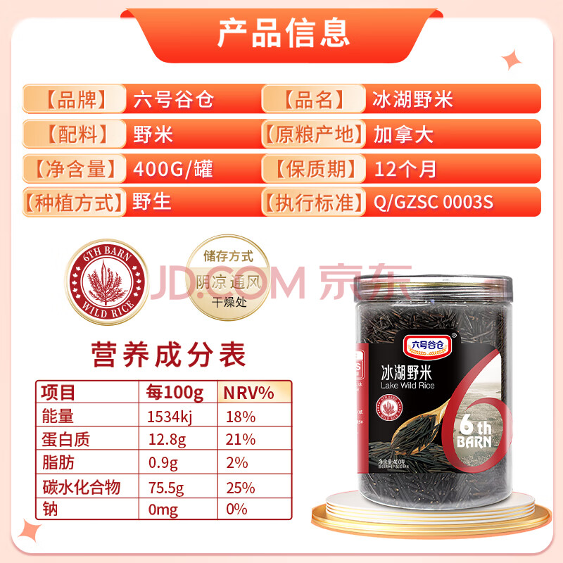商品相册:六号谷仓严选红标加拿大进口冰湖野米1号2号3号菰米松针米黑米杂粮400g第