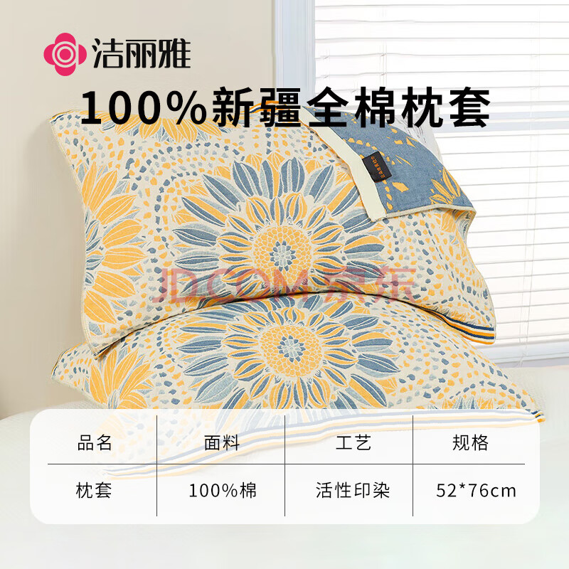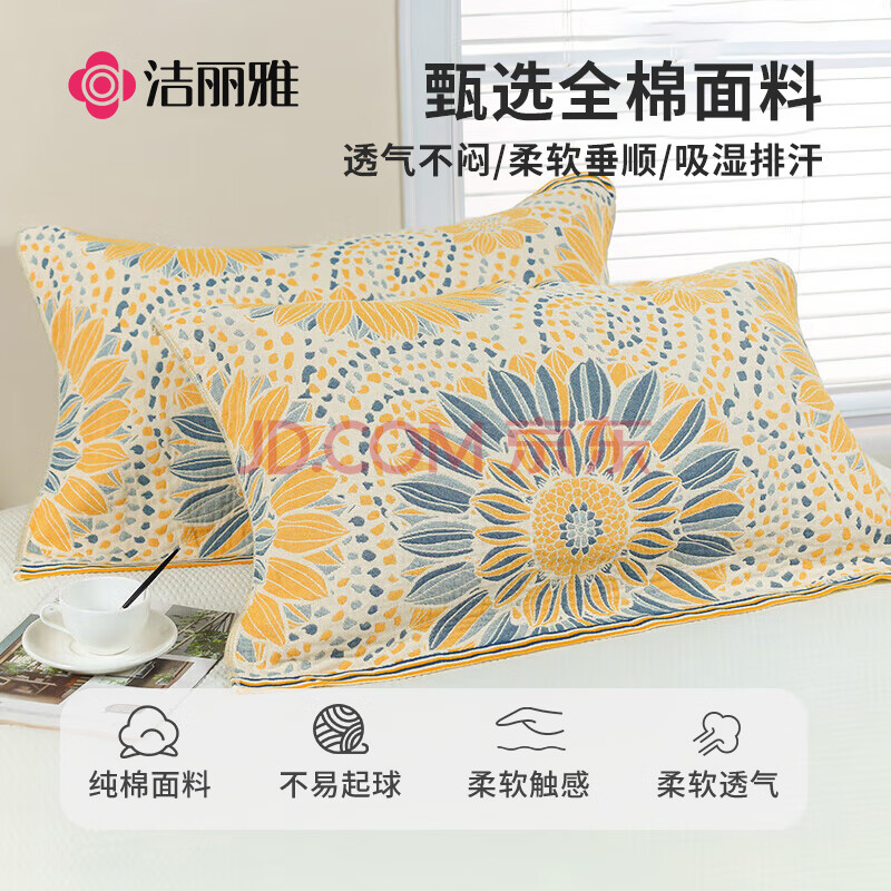 商品相册:洁丽雅(Grace)纯棉抗菌枕巾一对装纱布简约枕头巾 花语52*76cm第1张/共4