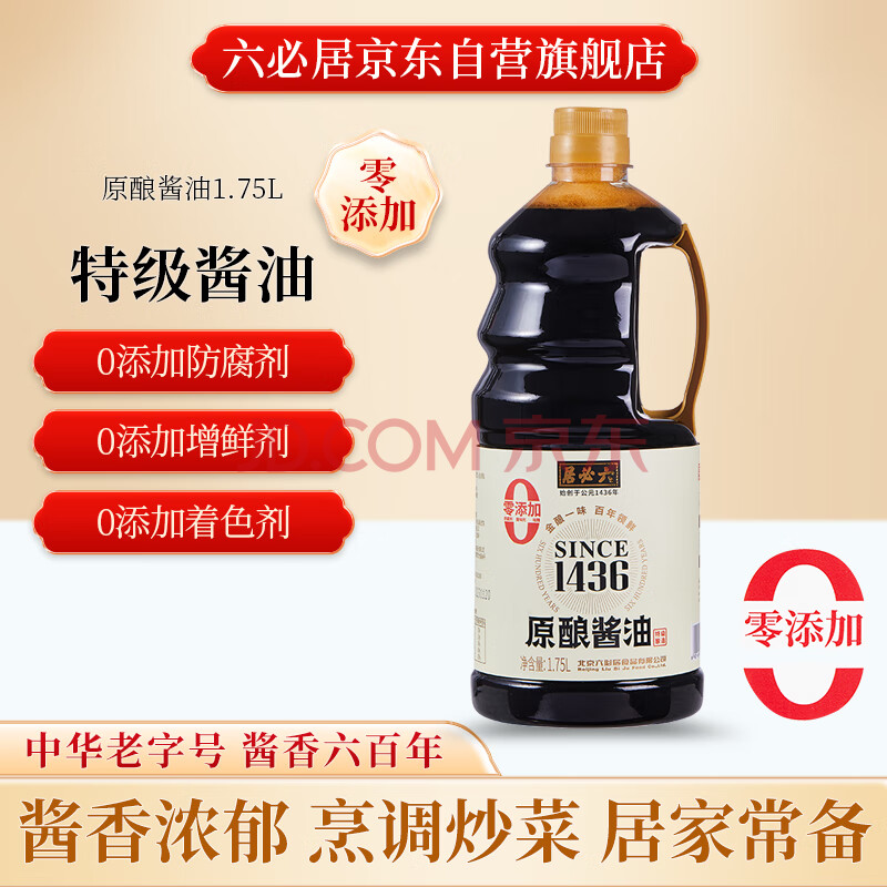 商品相册:六必居 原酿酱油 【0添加 特级酱油】1.75L 点蘸凉拌生抽 中华老字号第