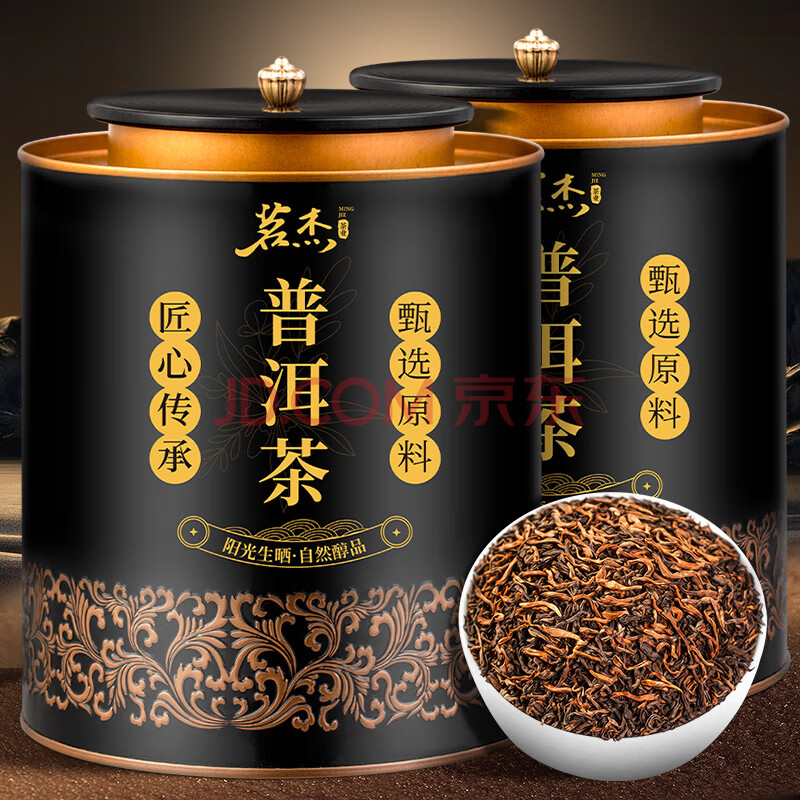商品相册:茗杰茶叶 云南普洱茶熟茶陈香熟普洱黑茶 散茶普洱熟茶叶罐装500g第