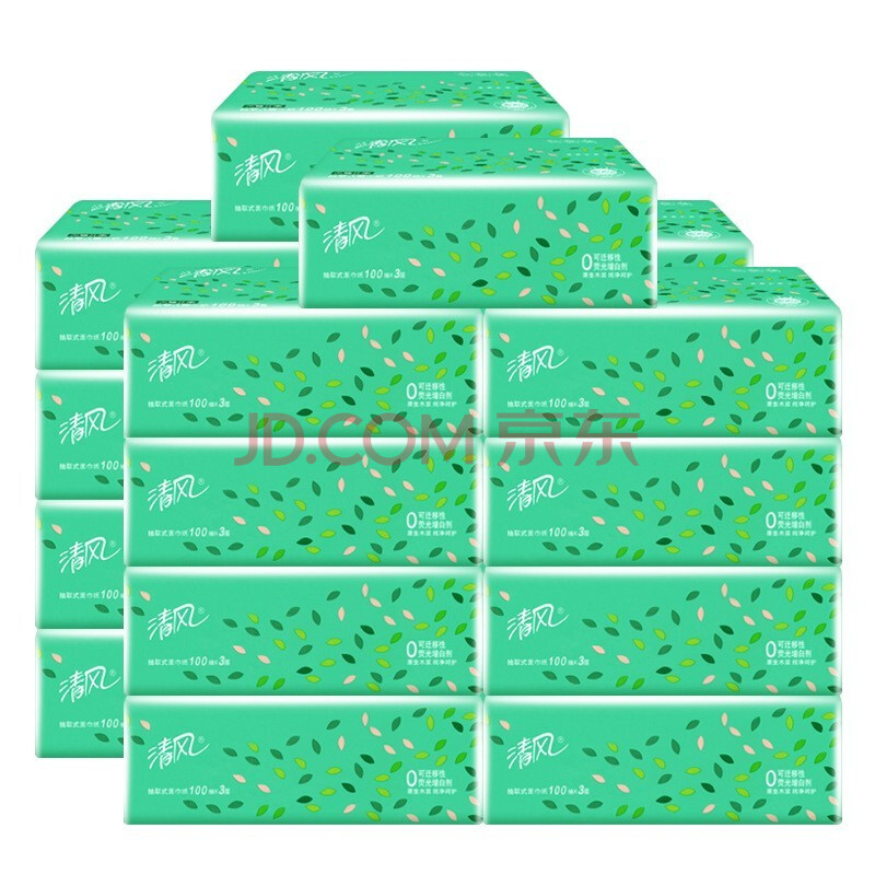 商品相册:清风 100抽3层抽取式面巾纸 BR10DWE 箱装 18包/箱 2箱起订第