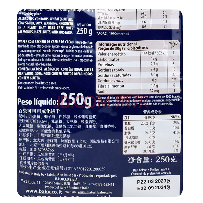 商品相册:BALOCCO百乐可 迷你威化饼干 可可味250g/袋 意大利进口零食下午茶糕点心第