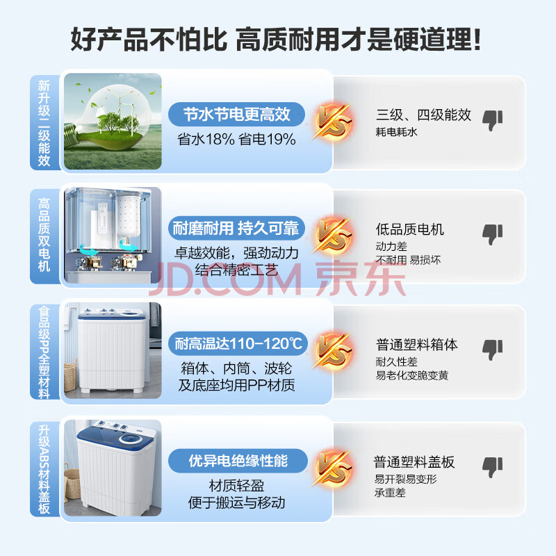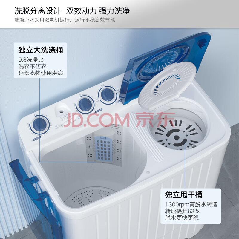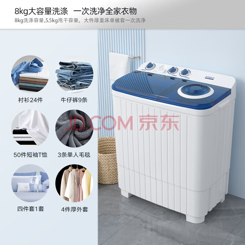商品相册:康佳(KONKA)半自动双桶双缸8公斤 洗衣机大容量脱水甩干机 家电家电补贴XPB80-752S第