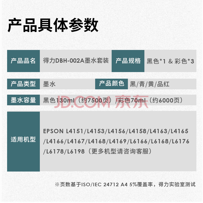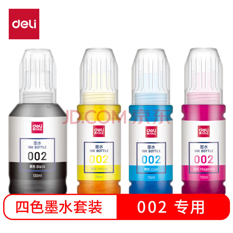 商品相册:得力(deli)002墨水 适用爱普生T03X1 L4158 L4168 6168 L6178 L6198 T03X4-002喷墨打印机墨水套装第