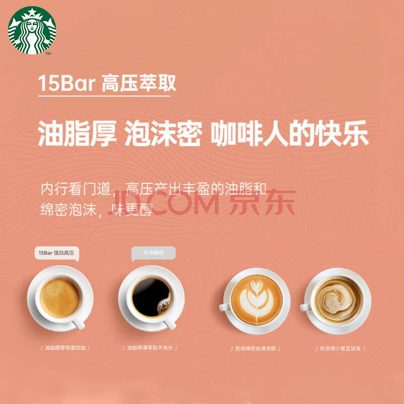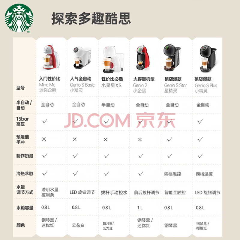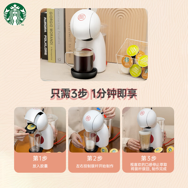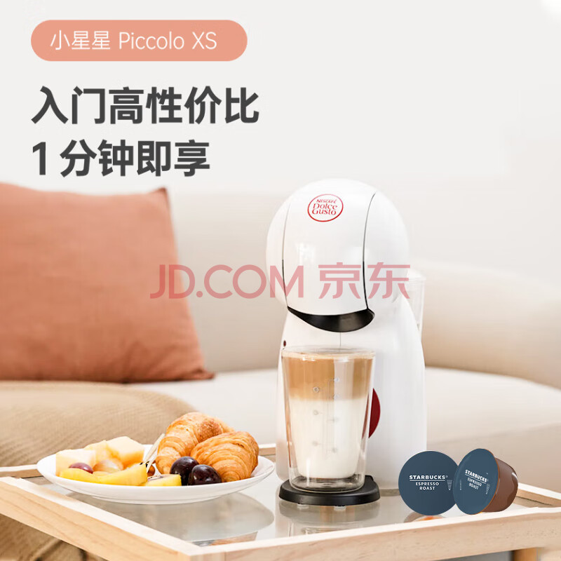 商品相册:星巴克(Starbucks)多趣酷思1键式家用商用胶囊咖啡机套装 Piccolo小星星白含胶囊1盒第