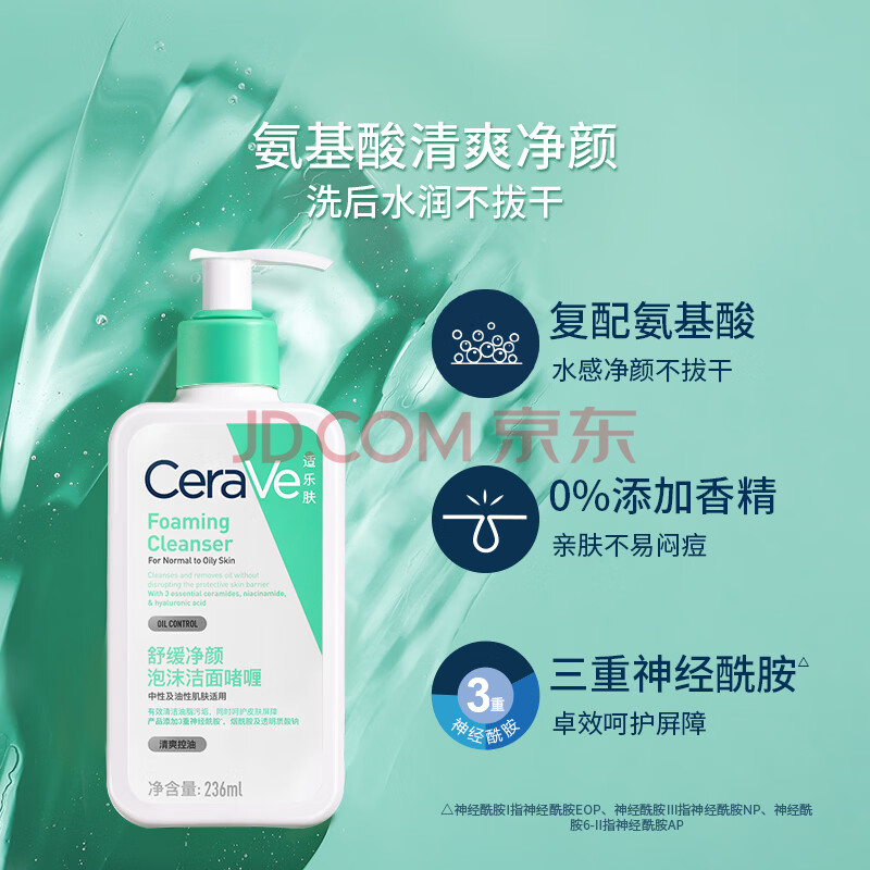 商品相册:适乐肤(CeraVe)【多肤质适用】氨基酸洗面奶473ml(男女士混油敏感肌温和控油)第