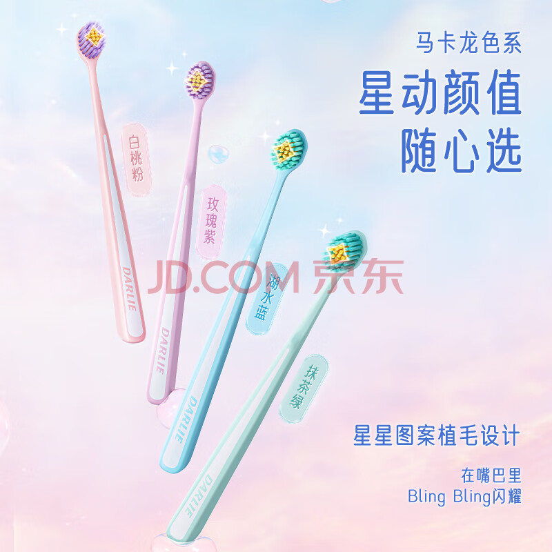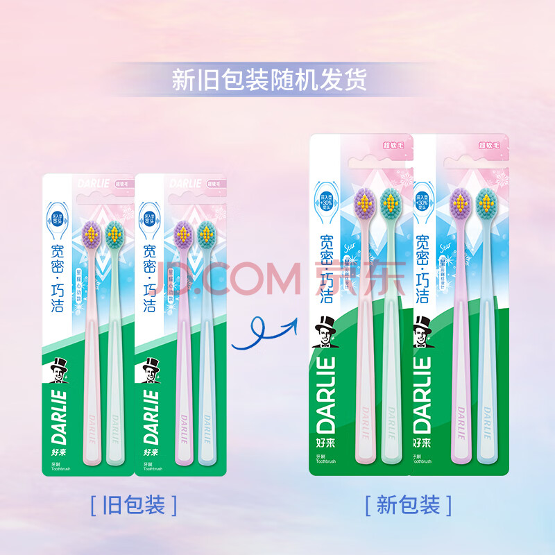 商品相册:DARLIE好来(原黑人)软毛宽头牙刷 高效深洁 巧洁护龈 4支装 便携装第