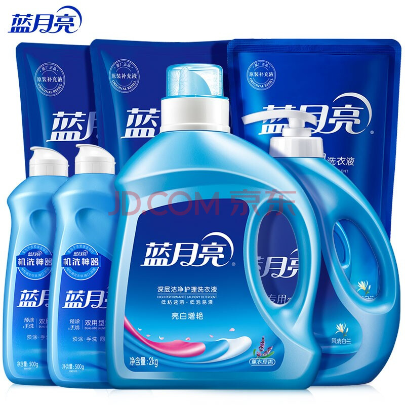 商品相册:蓝月亮洗衣液组合香型2kg瓶+1kg*3袋+500g*2瓶+1kg瓶 留香 机洗手洗可用第