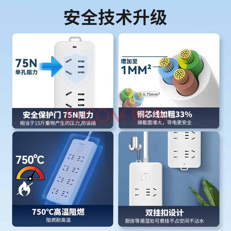 商品相册:德力西(DELIXI) 3C认证国标插座/插线板/插排/排插/拖线板/插板/接线板 3位五孔总控开关 1.8米第