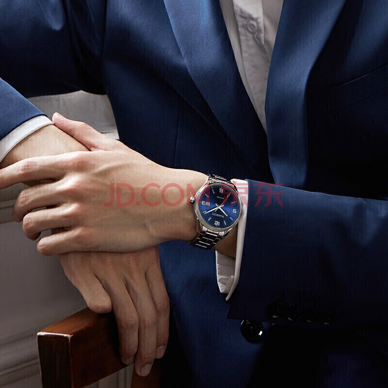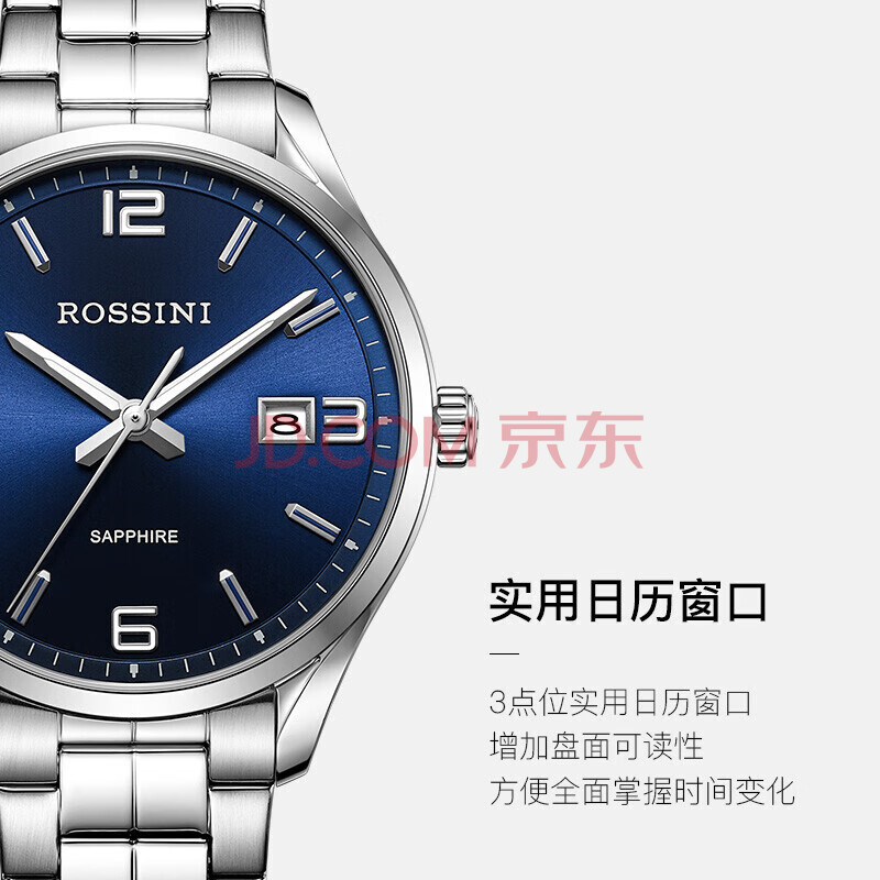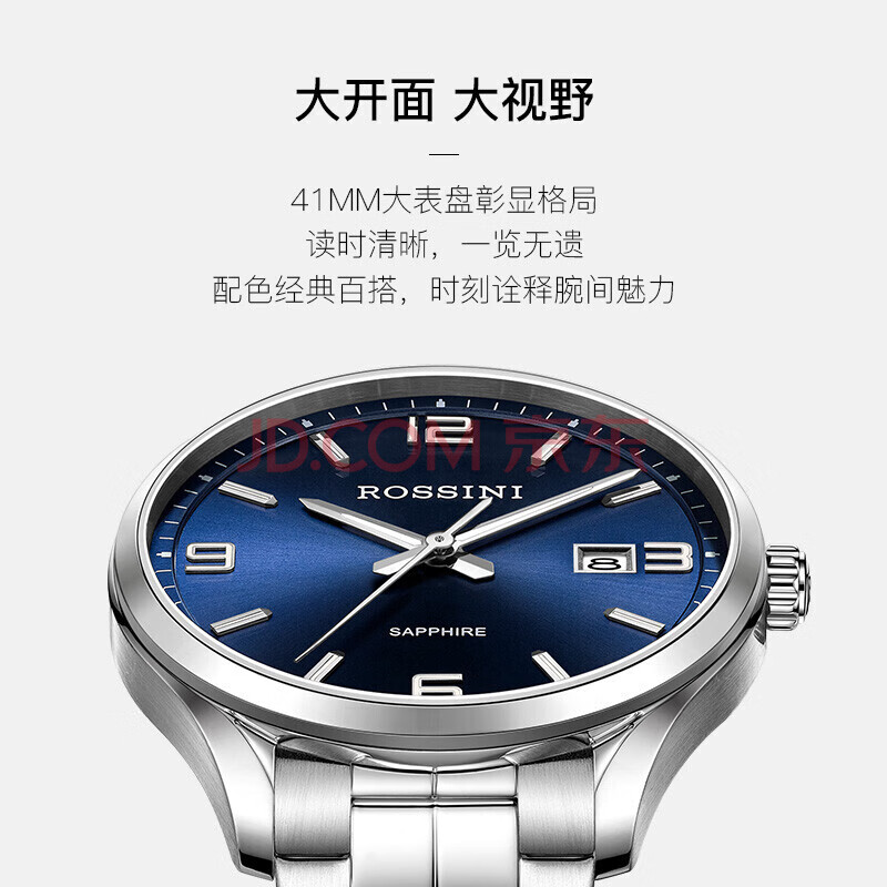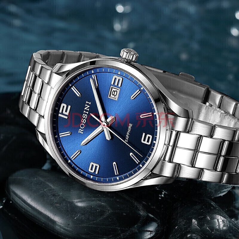 商品相册:罗西尼(ROSSINI)手表男石英表蓝盘钢带生日礼物国表商务防水简约日历 5200011第