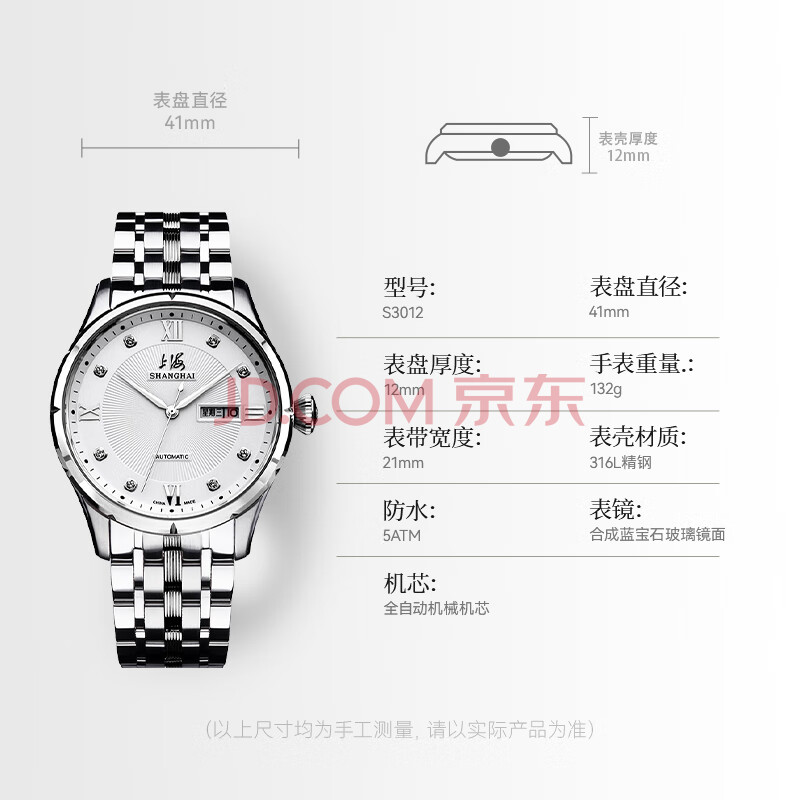 商品相册:上海(SHANGHAI)手表男款 男士自动机械表情侣表 国民系列 商务经典 SH3012N-1第