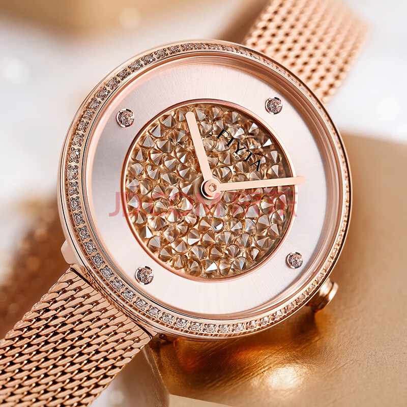 商品相册:飞亚达(FIYTA)手表女 倾城系列石英锆石表圈金色满天星米兰带 节日礼物送女友第