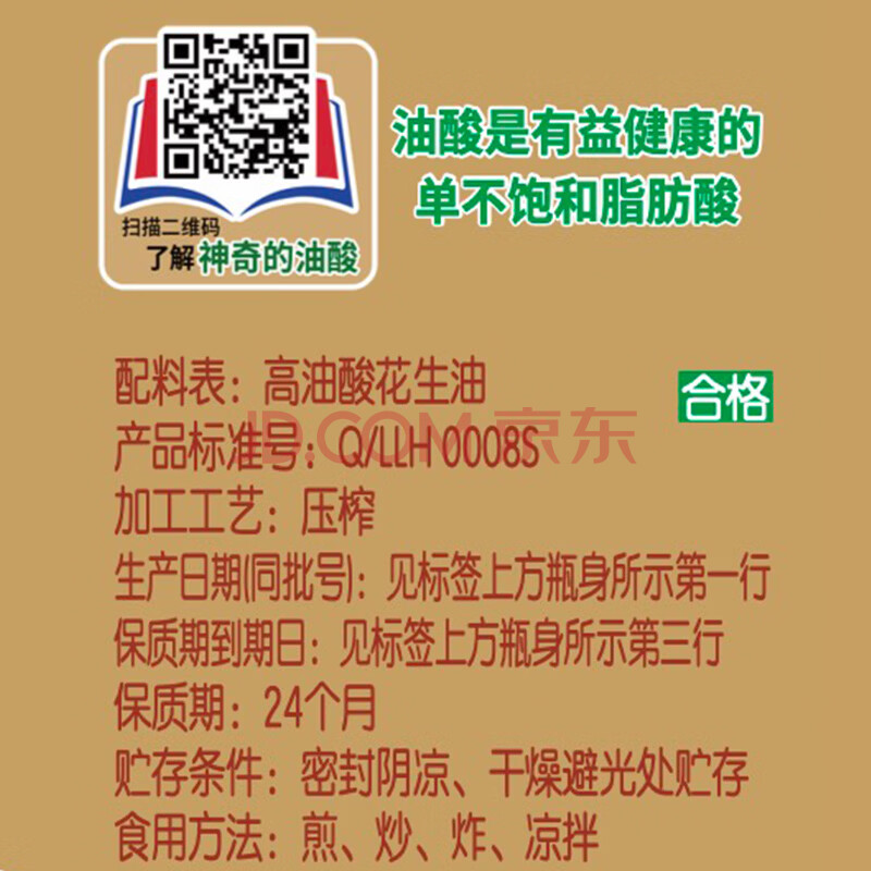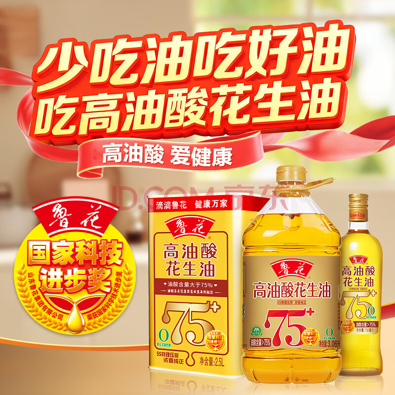商品相册:鲁花【保真花生油】5S压榨 高油酸花生油3.09L 油酸含量大于75%第