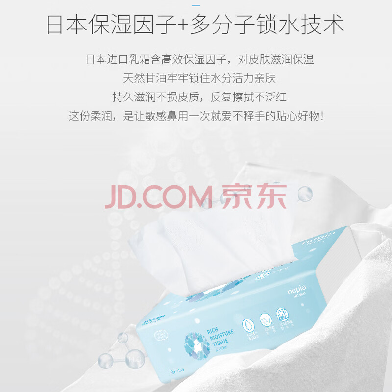 商品相册:妮飘(Nepia)润颜乳霜纸3层110抽*18包抽纸整箱保湿纸巾云柔巾鼻敏感适用第
