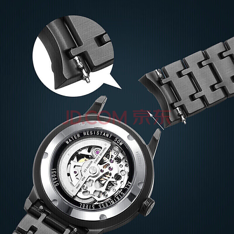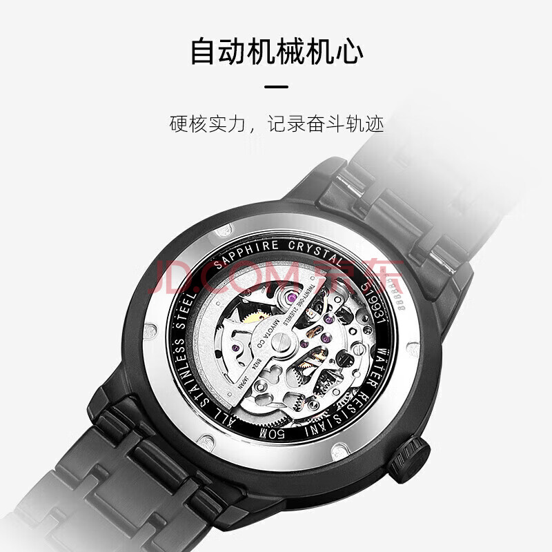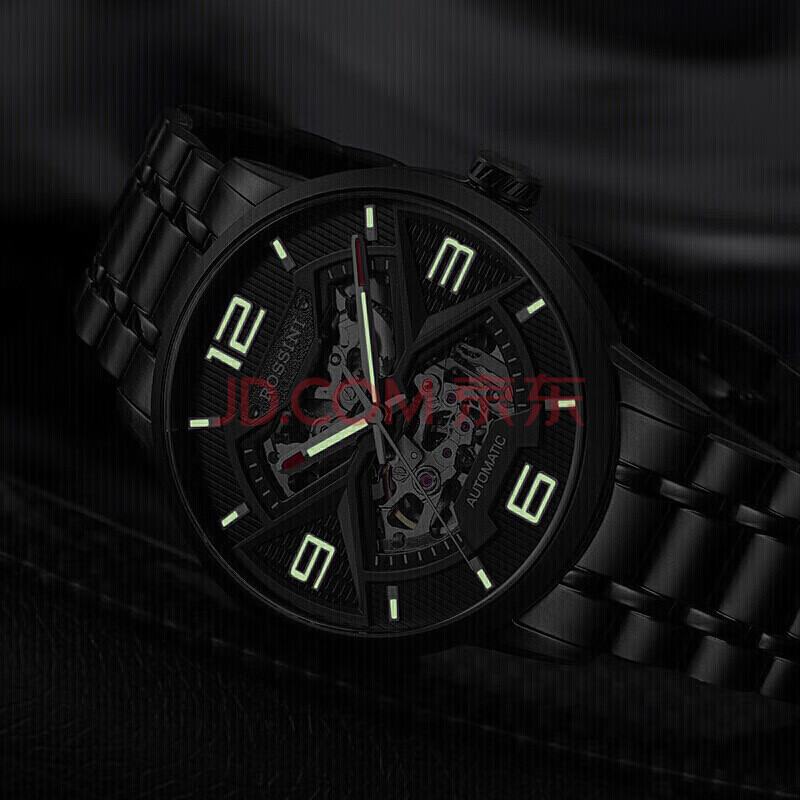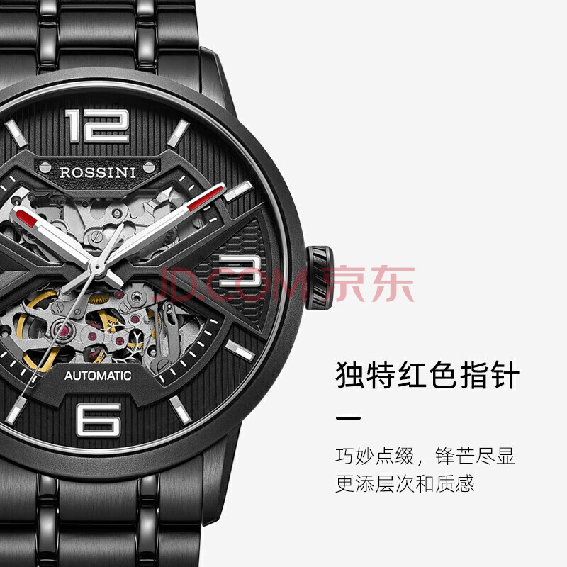 商品相册:罗西尼(ROSSINI)手表男自动机械表黑盘钢带生日礼物送男友国表商务镂空 519931第