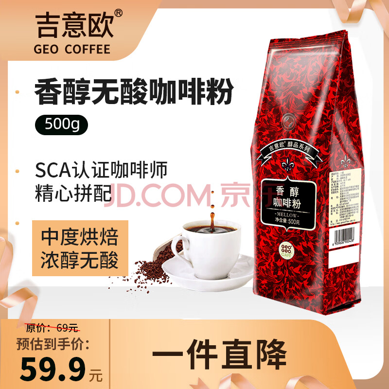 商品相册:吉意欧香醇咖啡粉500g浓醇无酸阿拉比卡豆非速溶黑咖啡中烘黑咖啡第