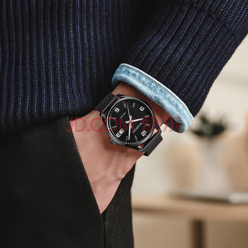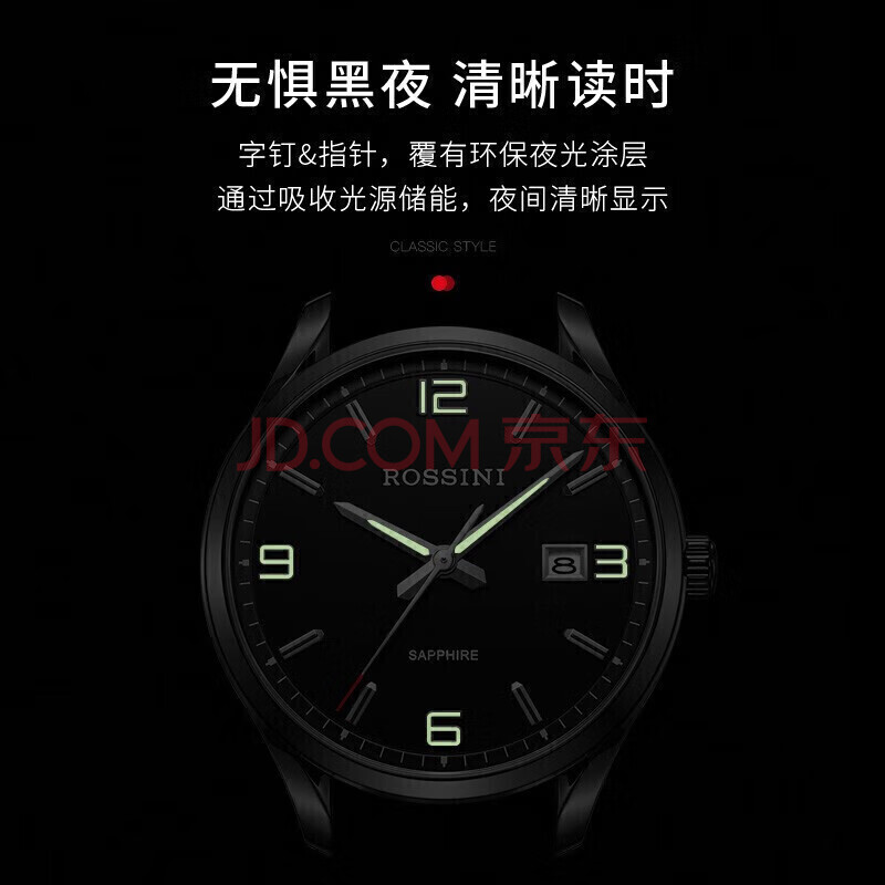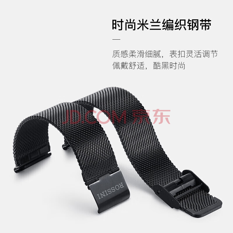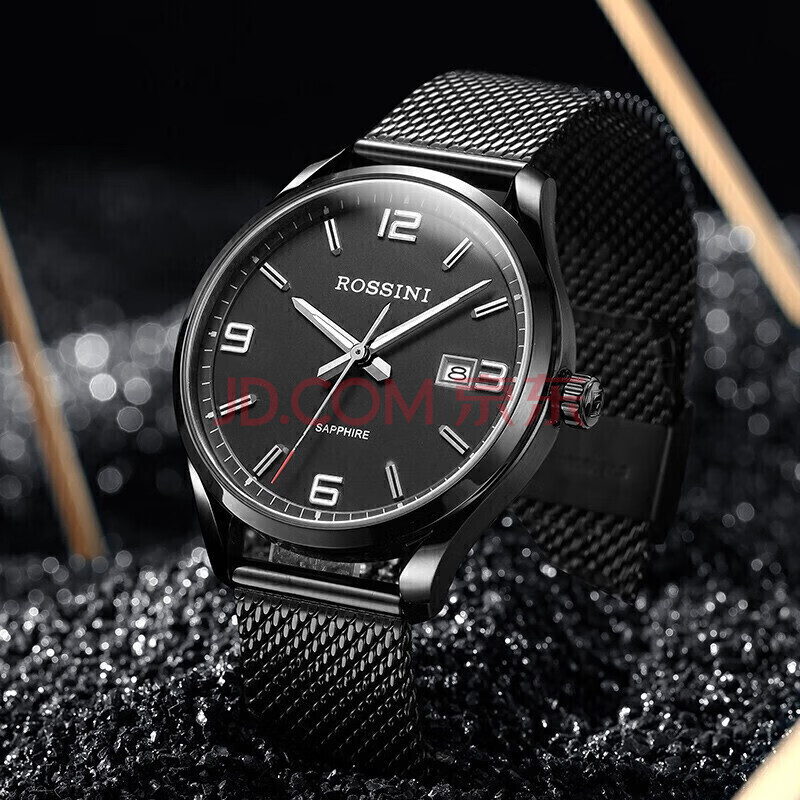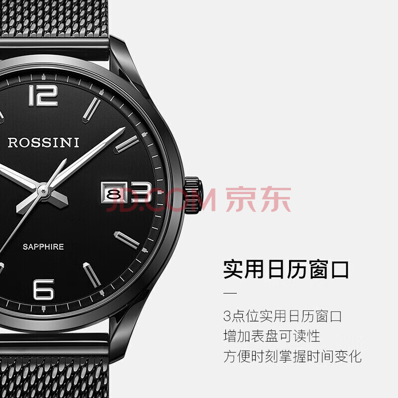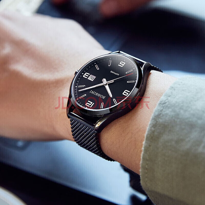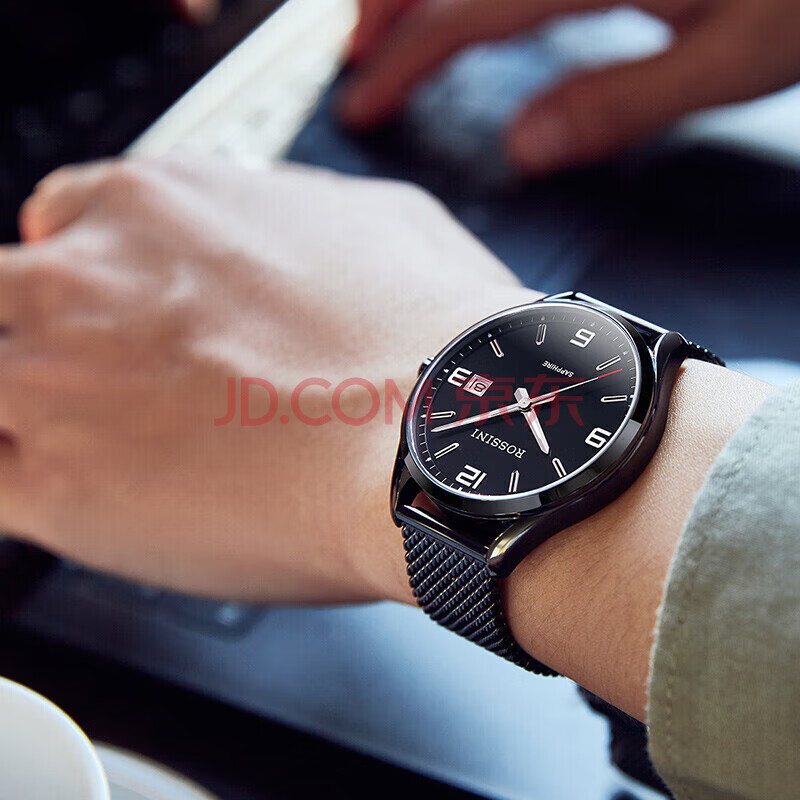 商品相册:罗西尼(ROSSINI)手表男款 学生手表生日礼物防水日历石英表黑盘米兰带5200011第