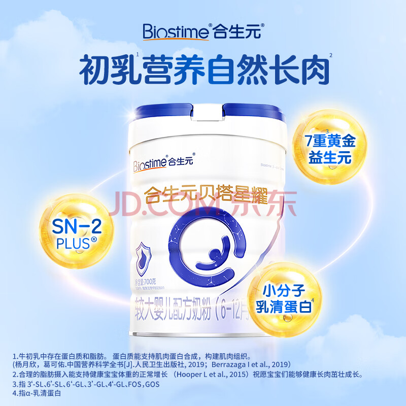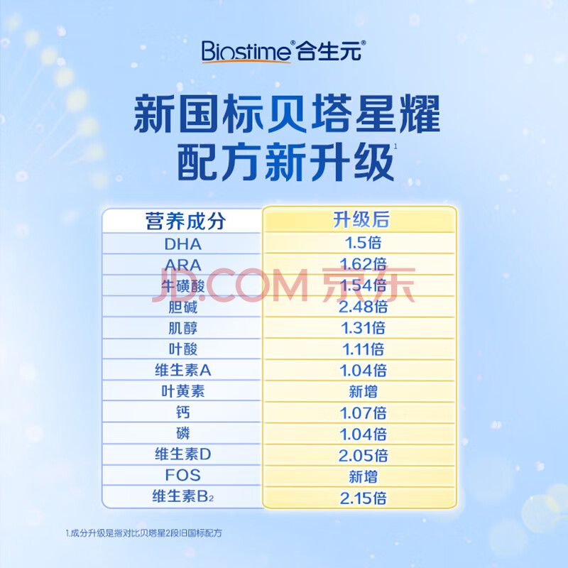 商品相册:合生元(BIOSTIME)贝塔星耀 较大婴儿配方奶粉 2段(6-12个月) 700克*6罐七重益生元第