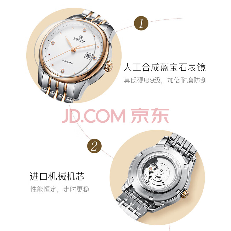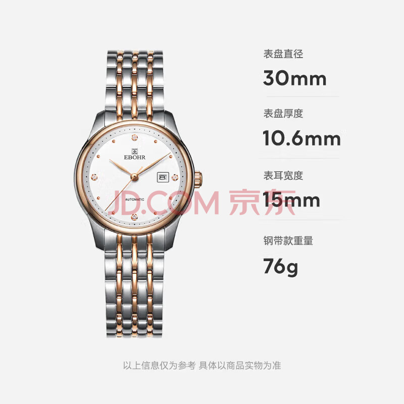 商品相册:依波(EBOHR)手表女大师系列简约风钢带女士机械腕表生日节日礼物36500321第