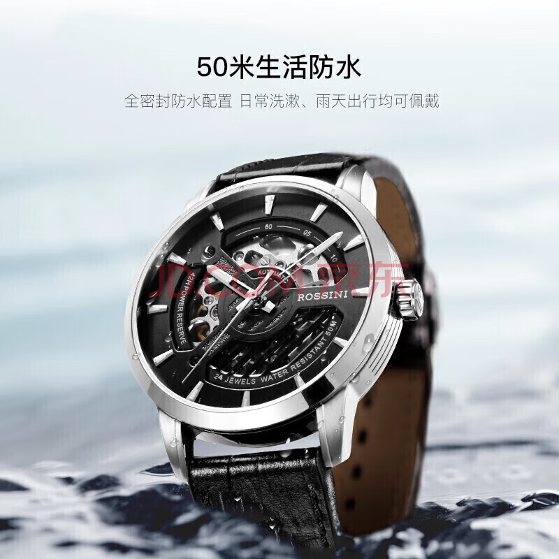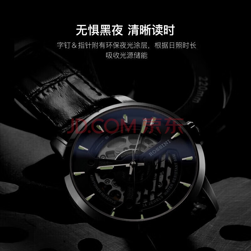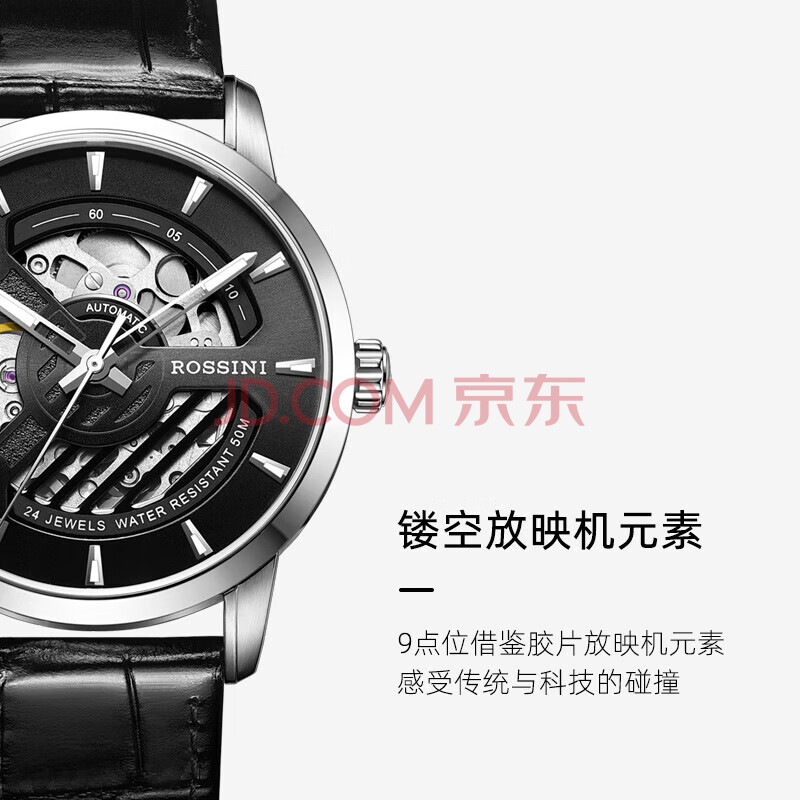 商品相册:罗西尼(ROSSINI)手表男款 生日礼物夜光镂空机械表黑盘皮带619909第
