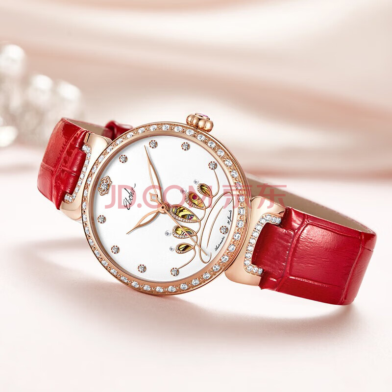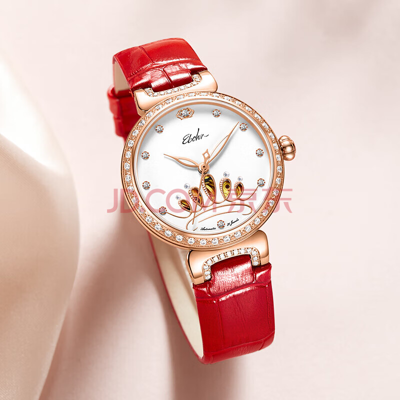 商品相册:依波(EBOHR)手表女蝶恋花皇冠镂空节日礼物红皮带女士生日礼物机械表3653024第