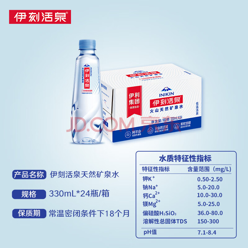 商品相册:伊利伊刻活泉火山天然矿泉水 330ml*24瓶整箱装天然弱碱【热门商品】第