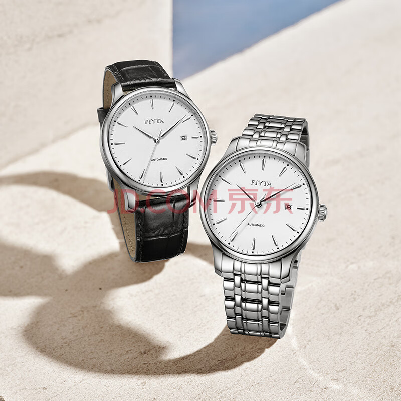 商品相册:飞亚达(FIYTA)经典系列 日历白盘黑皮带自动男士机械手表 商务简约节日生日礼物第