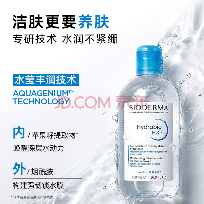 商品相册:贝德玛(BIODERMA)蓝水干皮保湿润妍补水卸妆水熟龄肌面部清洁长效水光500ml*2第