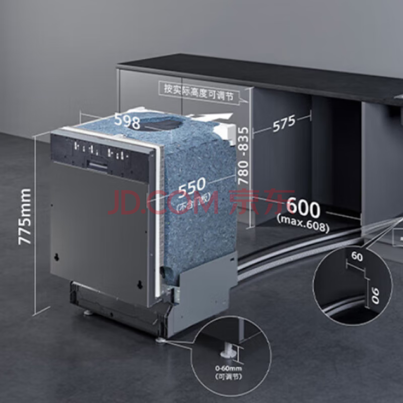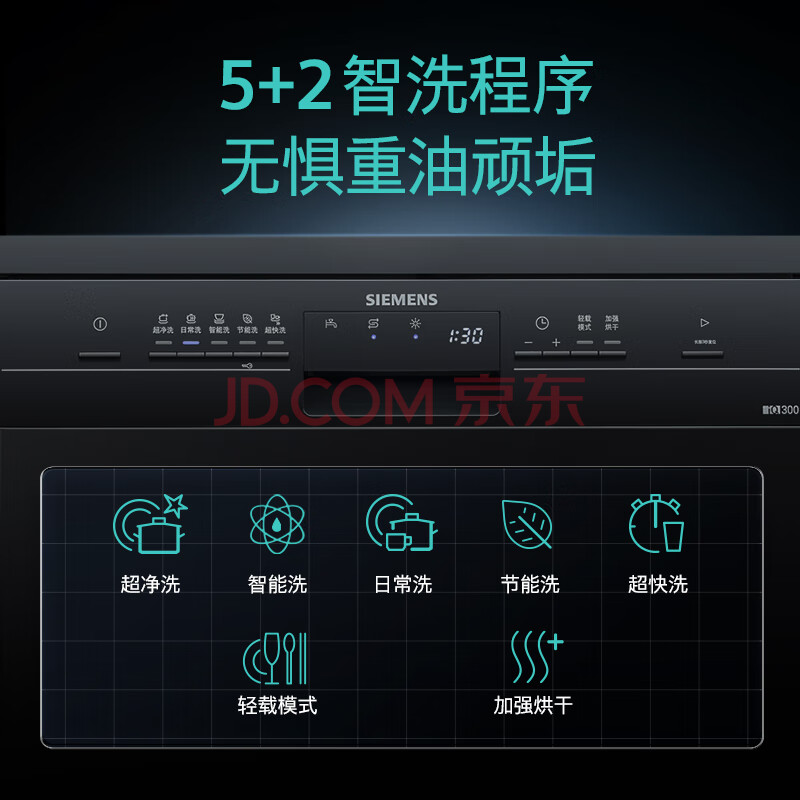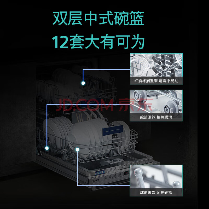 商品相册:西门子 12套大容量家用除菌洗碗机嵌入式 独立式 独嵌两用 变频 三重烘干 洗烘一体 SJ235B01JC(黑色)第