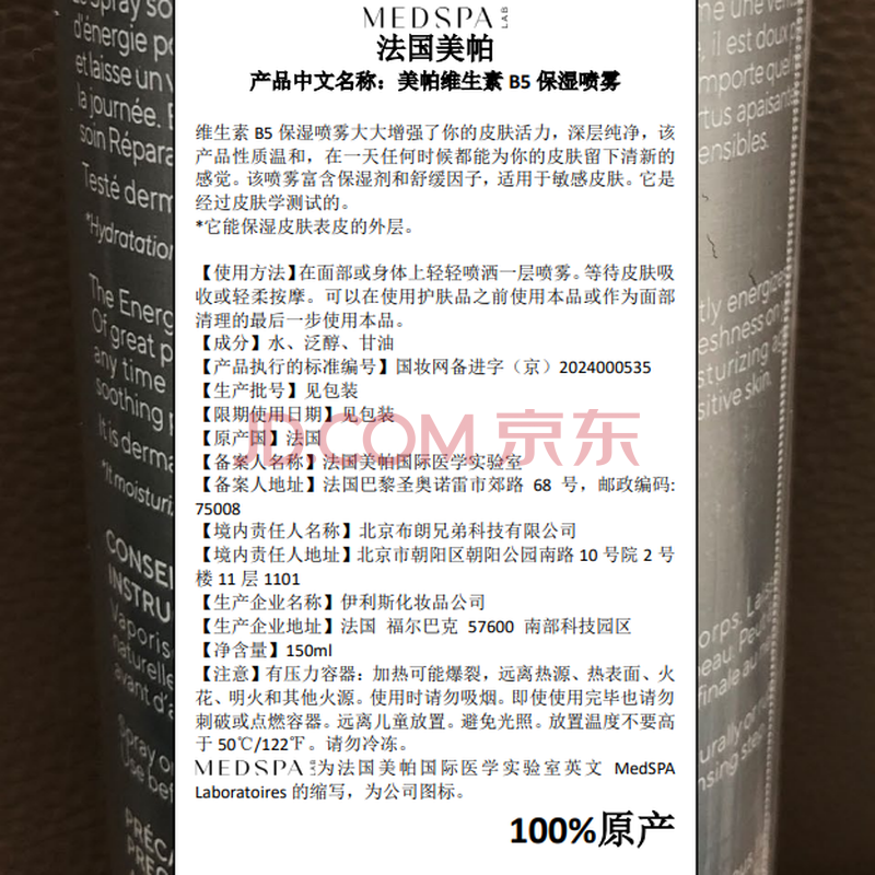 商品相册:美帕喷雾150ml 维生素B5修护补水生命水法国保湿舒缓女生礼物第