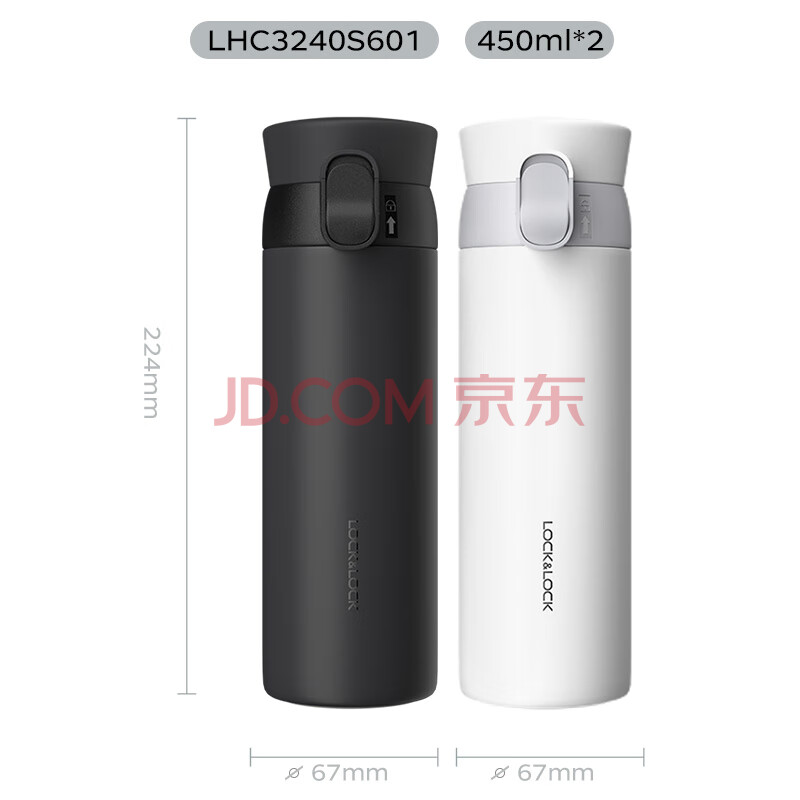 商品相册:乐扣乐扣(LOCK&LOCK)憧憬保温杯316不锈钢保温保冷男女商务便携水杯套装450ML黑+白第