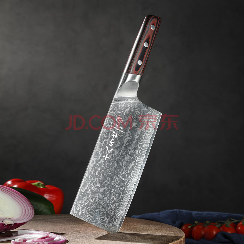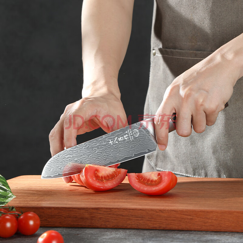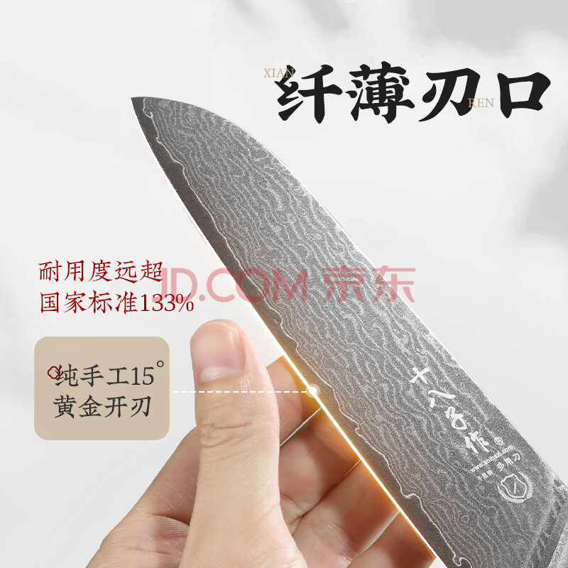 商品相册:十八子作大马士革纹刀具家用菜刀行云流水切片刀AS1602-B【精美礼盒装】第