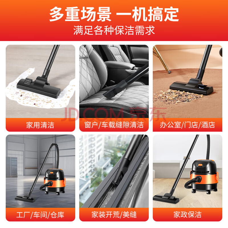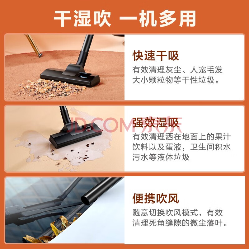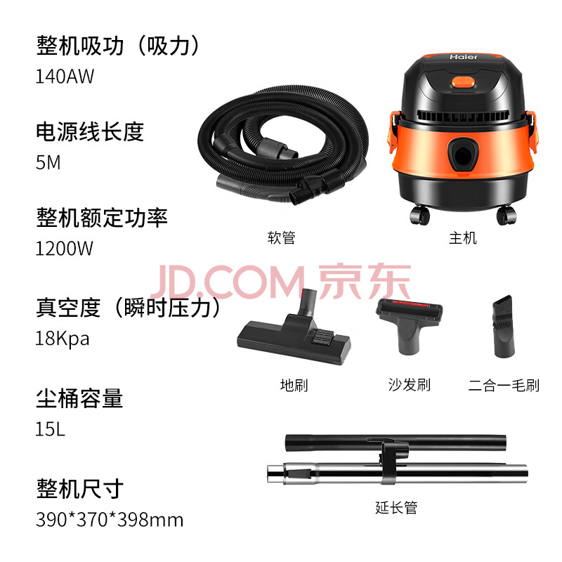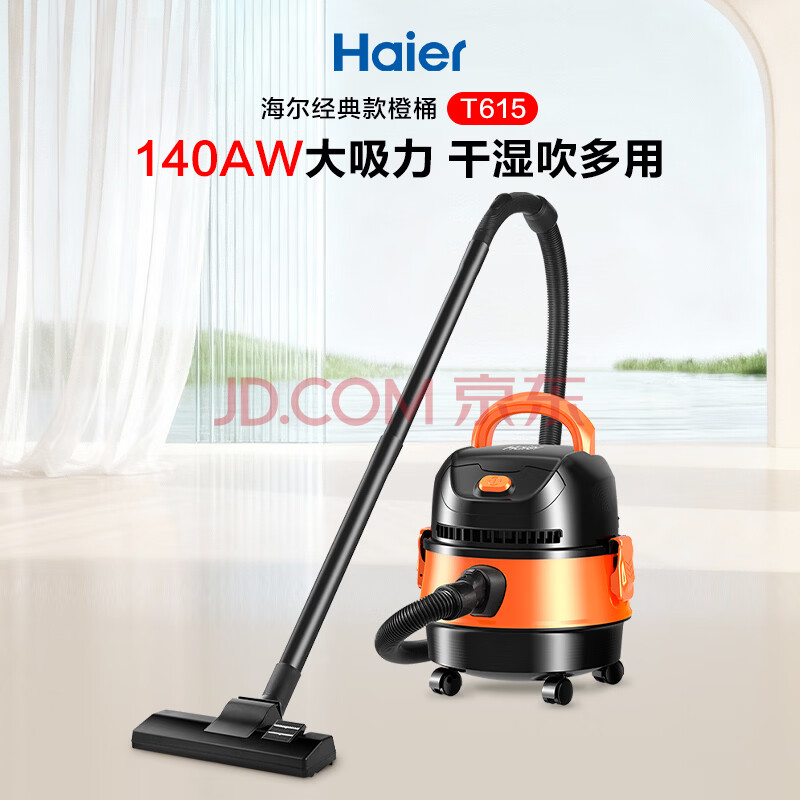 商品相册:海尔(Haier)桶式吸尘器家用美缝干湿吹多用大容量大吸力大功率吸水机小型工业开荒清灰吸毛吸灰尘器HZ-T615第1张/共8
