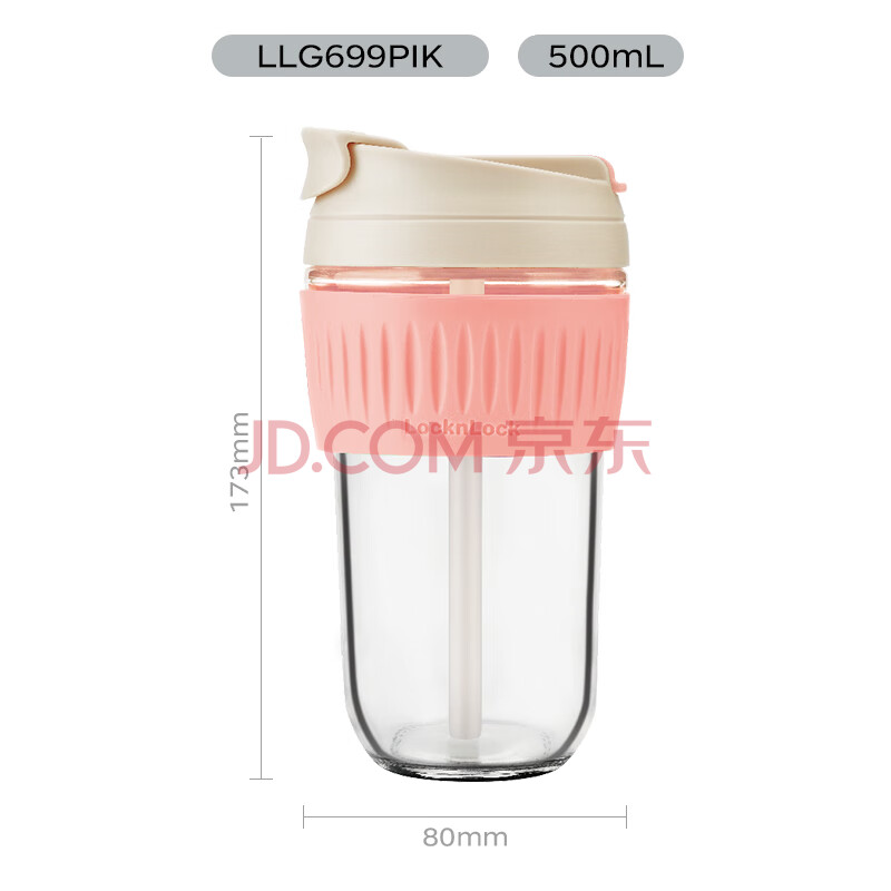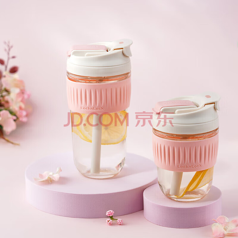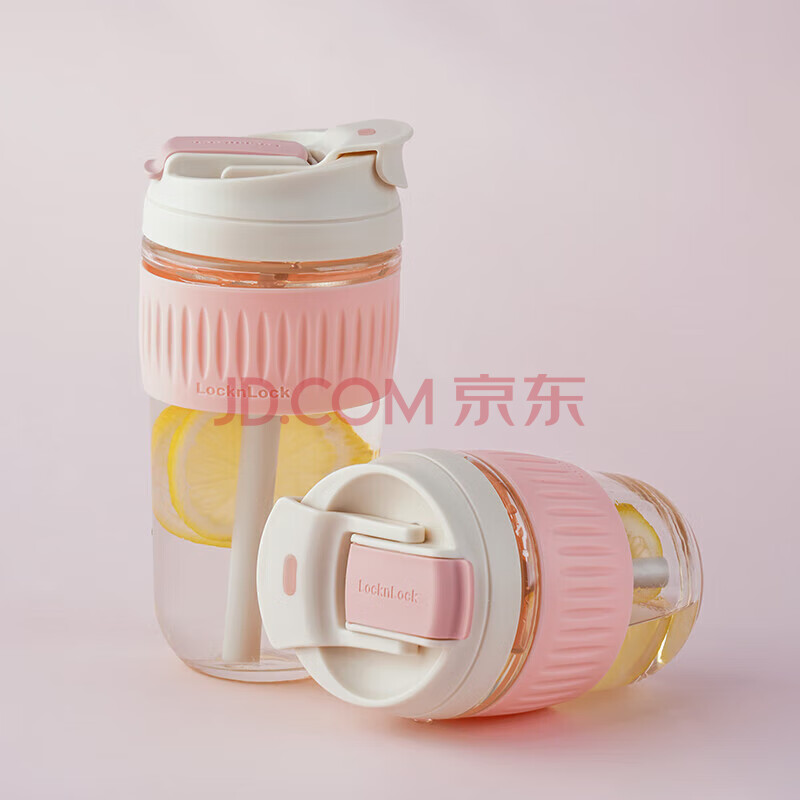 商品相册:乐扣乐扣(LOCK&LOCK)咖啡杯耐热玻璃水杯子男女学生便携式双饮吸管杯随手杯500ML粉色第1张/共9