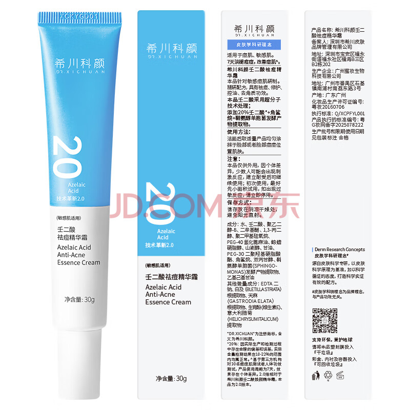 商品相册:希川科颜20%壬二酸祛痘精华霜 30g改善黑头粉刺去角质面霜 生日礼物第