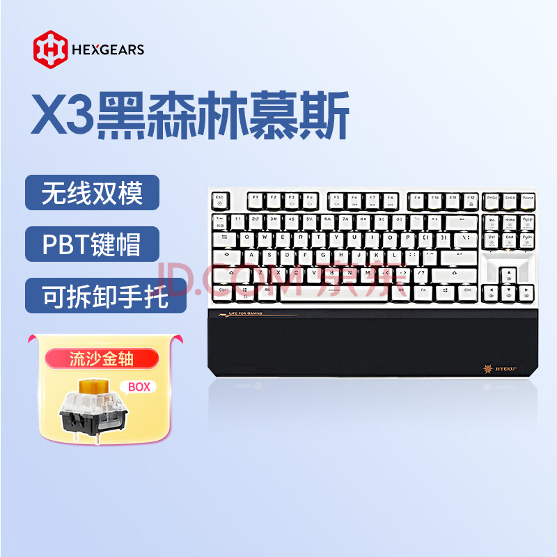 商品相册:黑峡谷(Hyeku)X3 87键有线/无线双模机械键盘游戏办公PBT键帽凯华BOX新轴附卡扣腕托 黑森林慕斯 凯华流沙金轴第