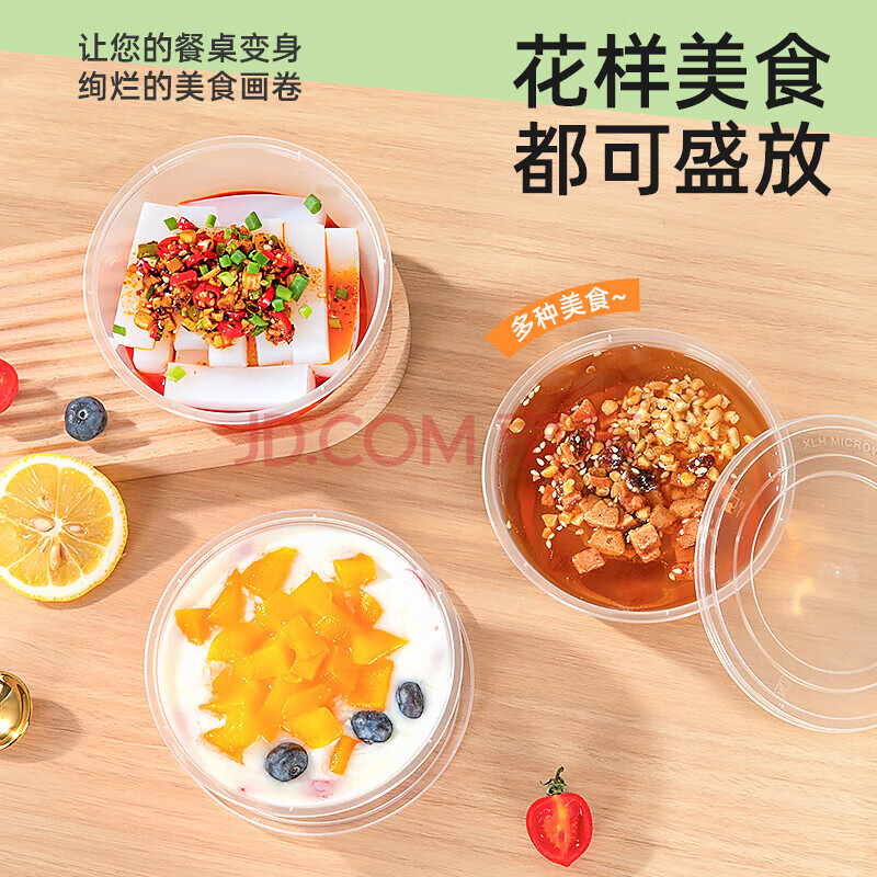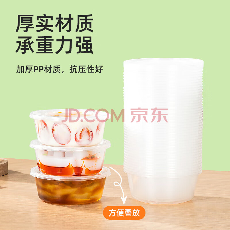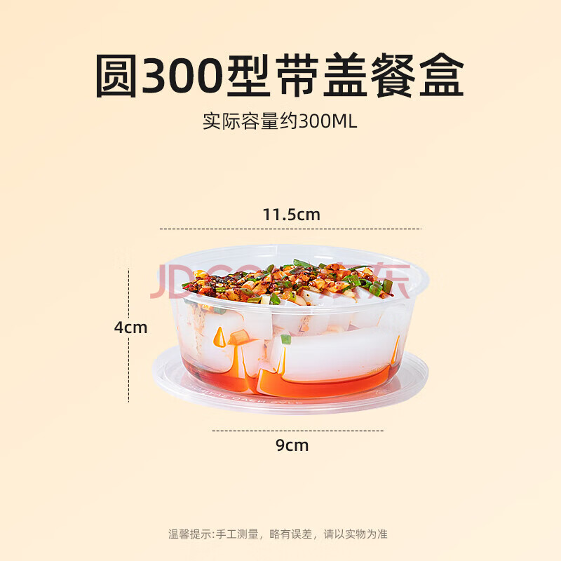 商品相册:特美居(temeiju)一次性饭盒圆形碗透明快餐盒加厚带盖打包盒外卖餐具300型450套第
