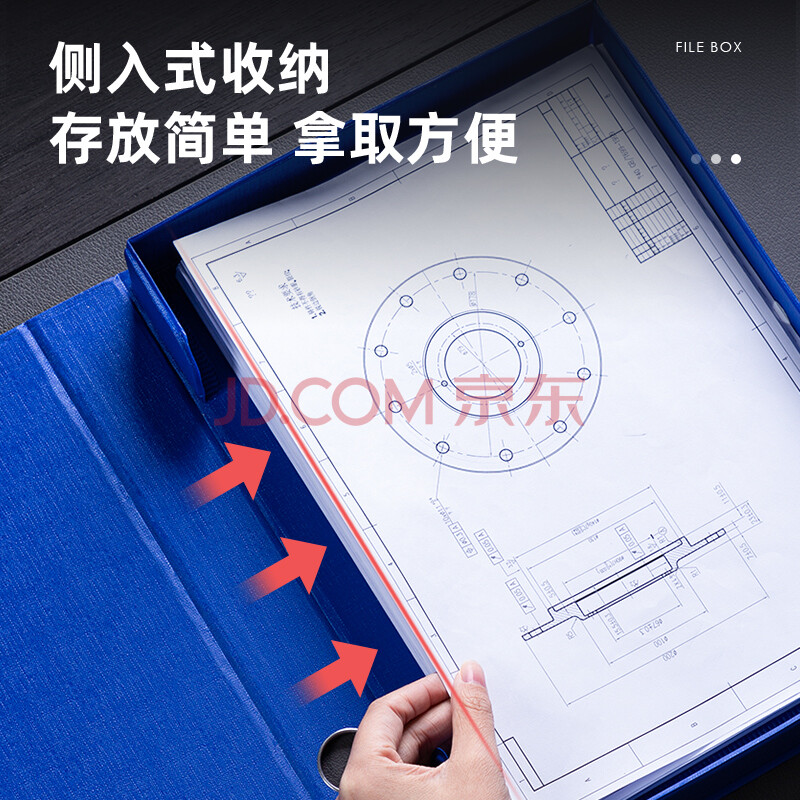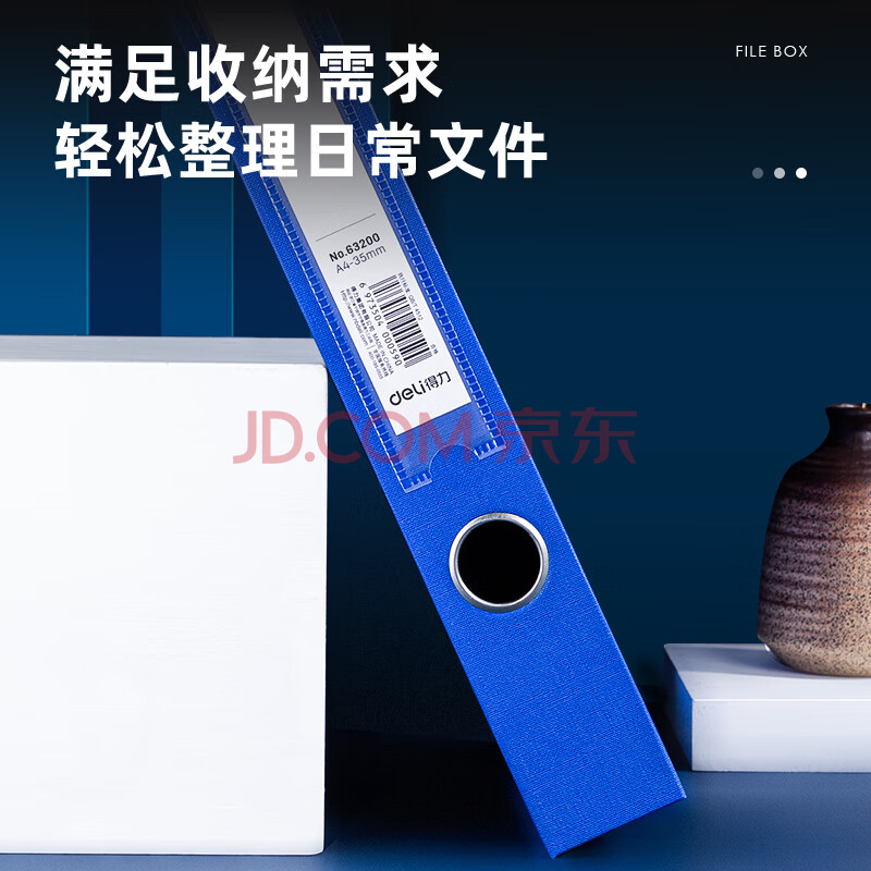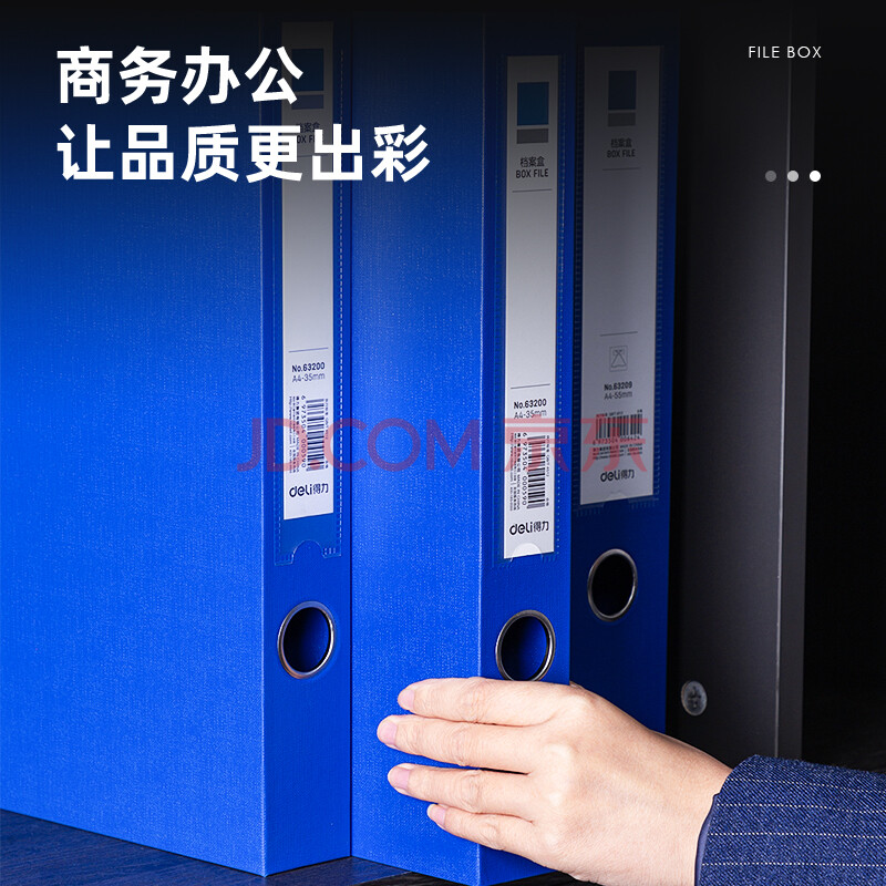 商品相册:得力(deli)35mmA4/PVC磁扣式文件盒 加厚档案盒财务票据试卷收纳 单只装 蓝色63200第