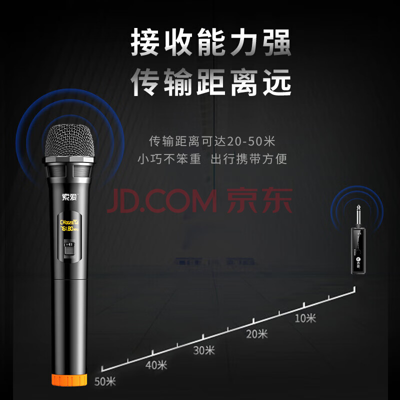 商品相册:索爱(soaiy)充电无线麦克风家庭KTV唱歌舞台主持演讲K歌会议音箱音响功放万能一拖一金属话筒 第