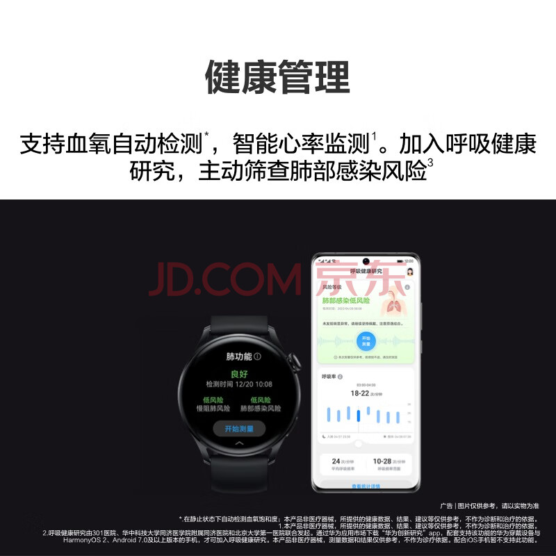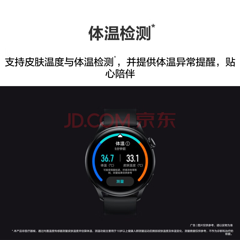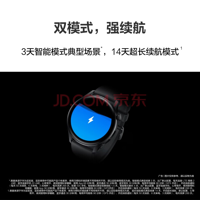 商品相册:华为HUAWEI WATCH 3 黑色氟橡胶表带 46mm表盘华为手表运动智能表eSIM独立通话鸿蒙系统男女第
