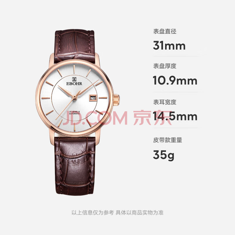 商品相册:依波(EBOHR)手表女大师系列简约休闲皮带女士机械表节日礼物新年跨年56130140第