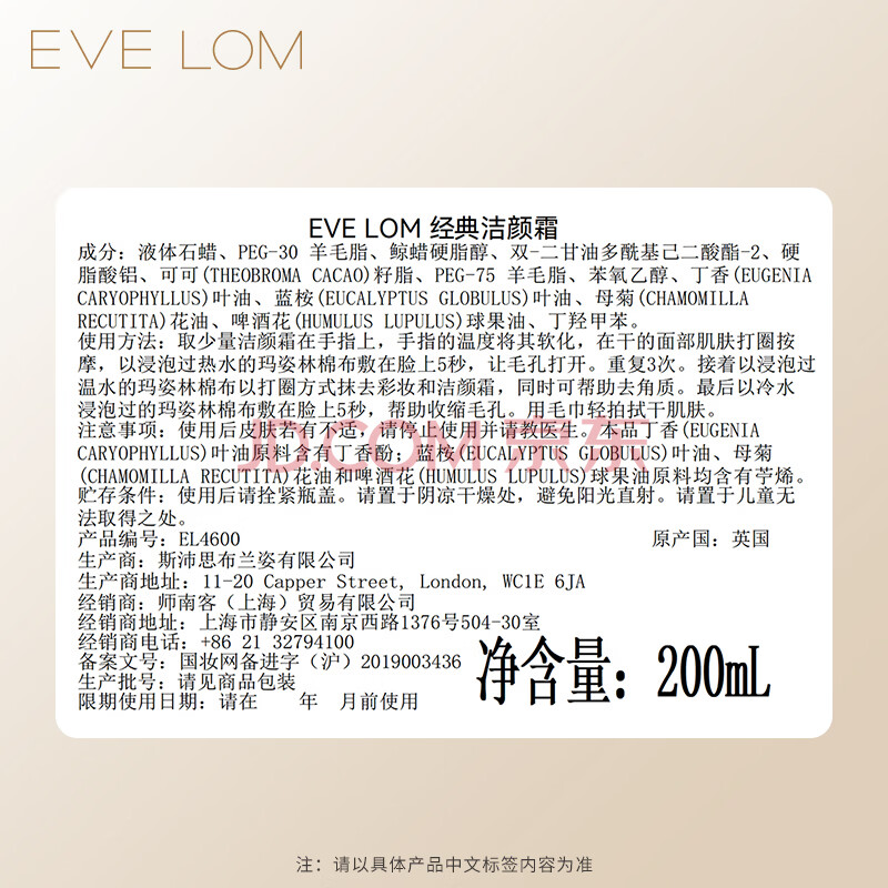 商品相册:EVE LOM伊芙珑经典洁颜霜卸妆膏200ml 养肤清洁细致毛孔 生日礼物送女生第