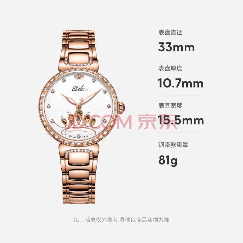 商品相册:依波(EBOHR)手表女 蝶恋花皇冠镂空女士机械表节日生日礼物36530120送女友第