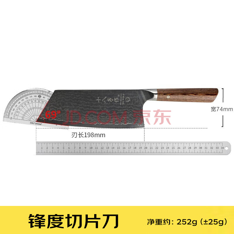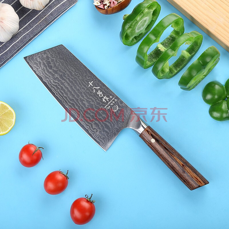 商品相册:十八子作大马士革纹复合钢刀具 9铬菜刀锋度切片刀S2009-B【精美礼盒装】第