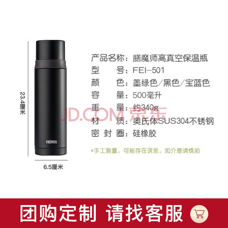 商品相册:膳魔师(THERMOS)500ml保温杯商务办公带杯盖水杯男女士简约保冷杯 FEI-501 BK黑色第
