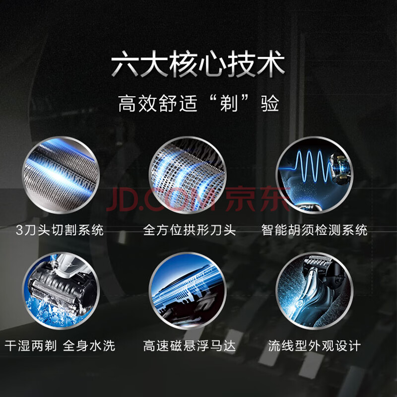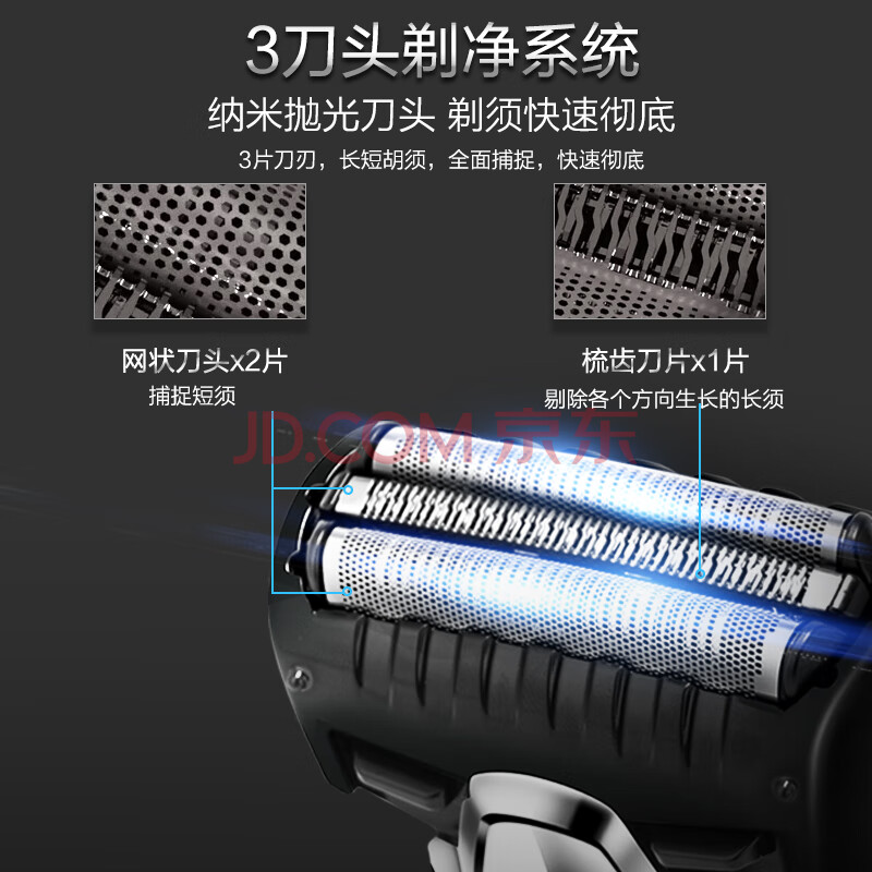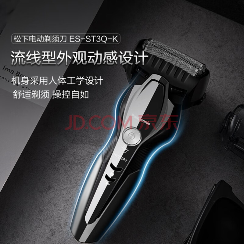 商品相册:松下(Panasonic)经典5系电动剃须刀往复式进口磁悬浮马达便携款可水洗男士刮胡刀进口三刀头送男士生日礼物ST3Q黑第