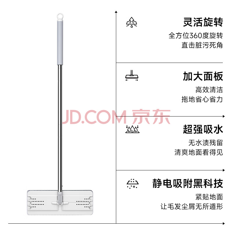 商品相册:五月花平板拖把33CM*1布杆长125CM大号刮刮桶干湿两用平板单拖把配件第