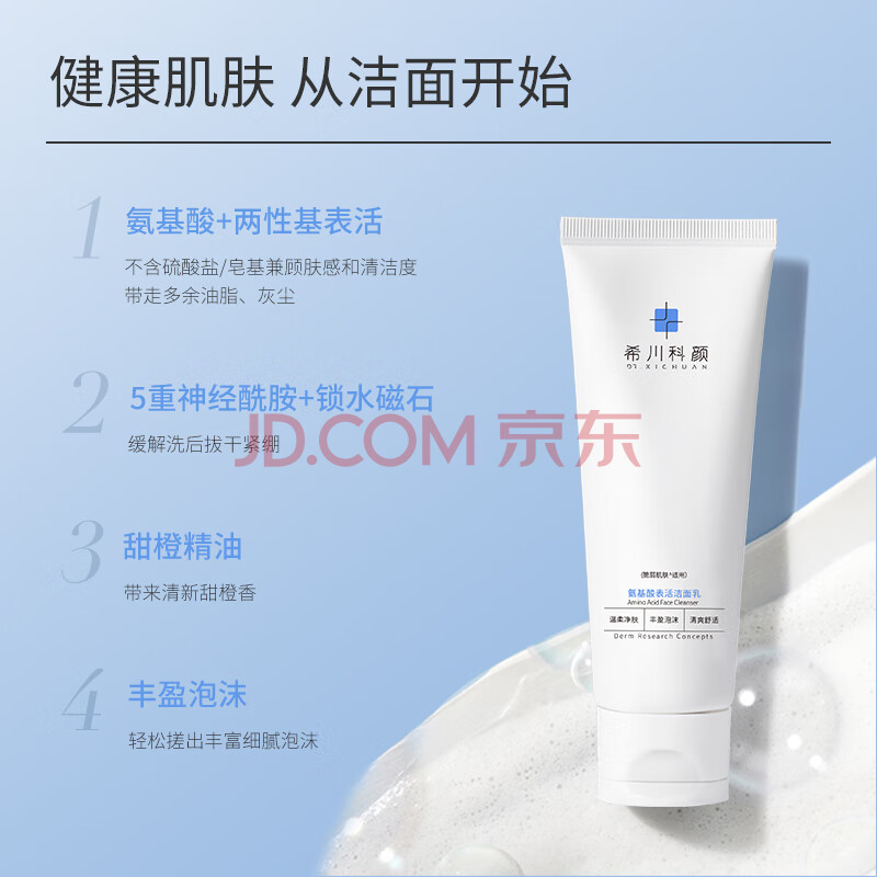 商品相册:希川科颜氨基酸表活洗面奶学生洁面乳保湿不假滑 泡沫120ml生日礼物第