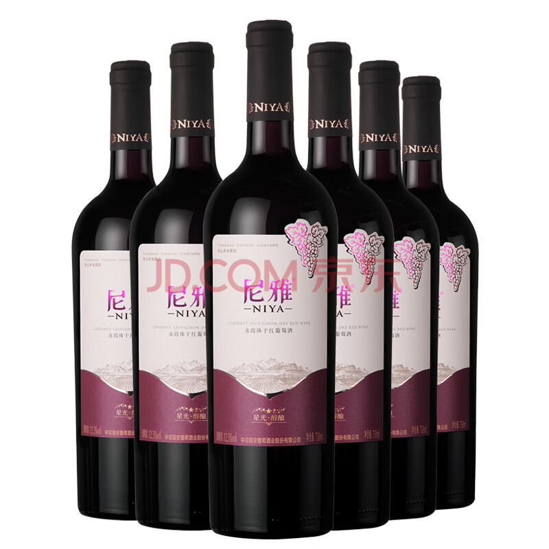 商品相册:尼雅【热门商品】星光系列醇酿赤霞珠干红葡萄酒750mL*6瓶整箱装第